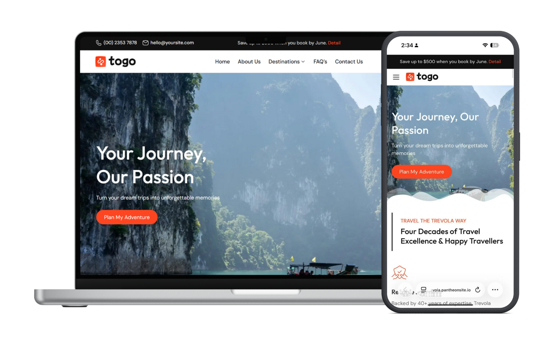 Travel agency website designed to showcase destinations and tours with vibrant visuals, clear packages, and a seamless booking flow.